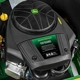 This John Deere 54-in triple blade Accel Deep Mower Deck, engineered to process tall grass at faster speeds. The 24 HP John Deere Extended Life Series (ELS) V-Twin engine has plenty of power and torque for the Z515E to handle tough mulching, mowing, and bagging conditions most suitable for a flat with obstacles terrain, two plus acres. Comfortable 18-in back two spring suspension seat with armrests, cup holder, side and under seat storage compartments, foot lift, color coded controls for easy identification and low-fuel warning light visible in daylight. The Z515E is equipped with a foldable Roll-Gard rollover protective structure (ROPS) and retractable seat belt.